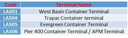 下兩圖是COSCO美西南航線碼頭分布。主要有三大碼頭: